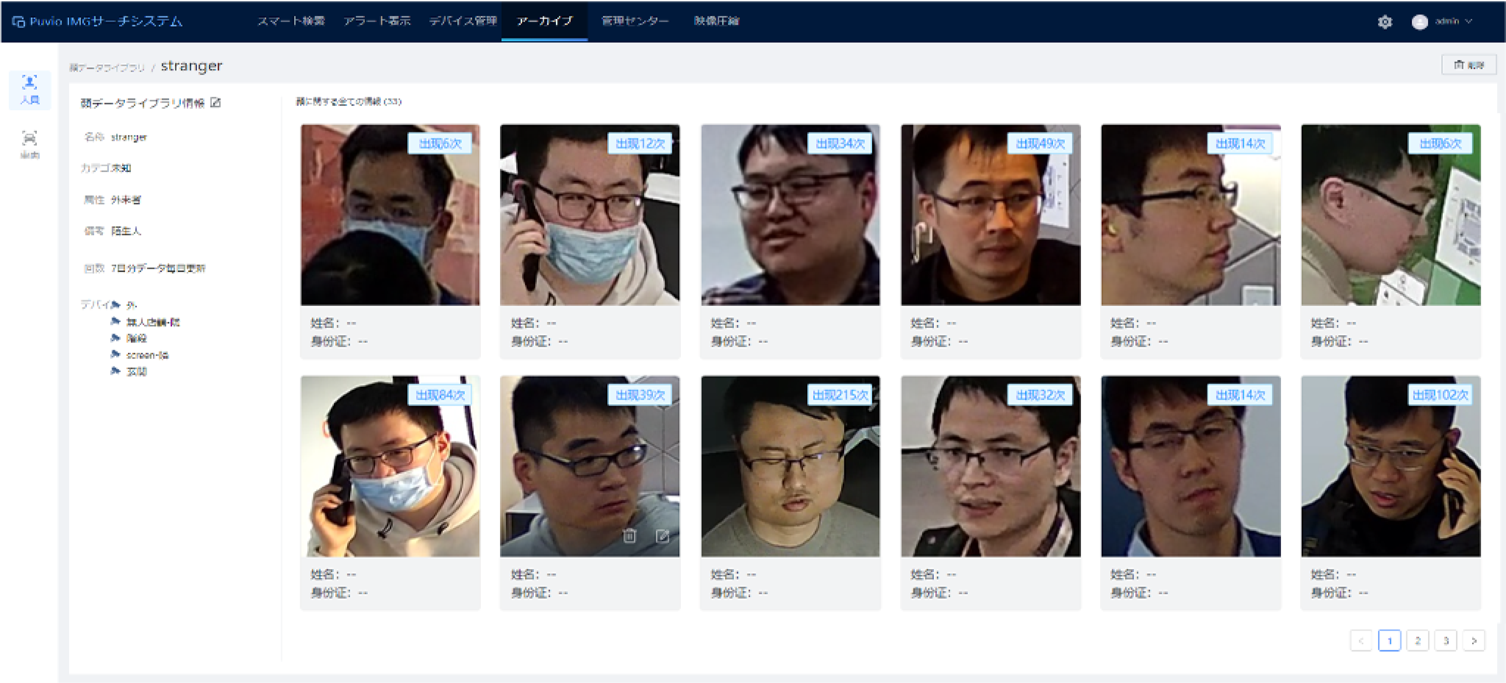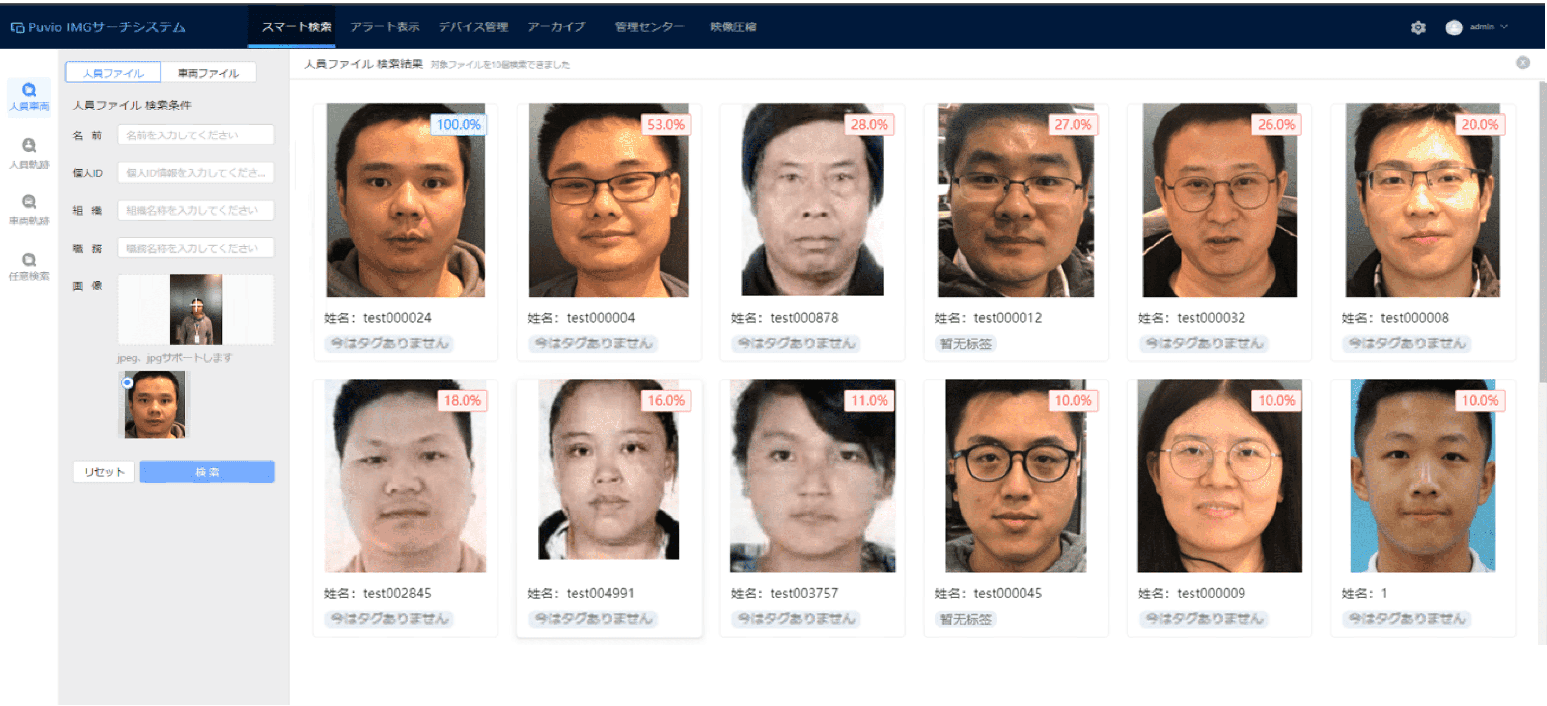 -各フレームでは、人物画像をデータベースと照合し、類似性から同じ人物であるかどうかを判断します。監視カメラ管理システムからAIイメージング認識までのトータルシステムを通して、映像及び動画の画像検出、分類を行って、迅速確実な推論、認識(人物/物品、位置、確信度)を正確にタグ付け作業し自動化できます。