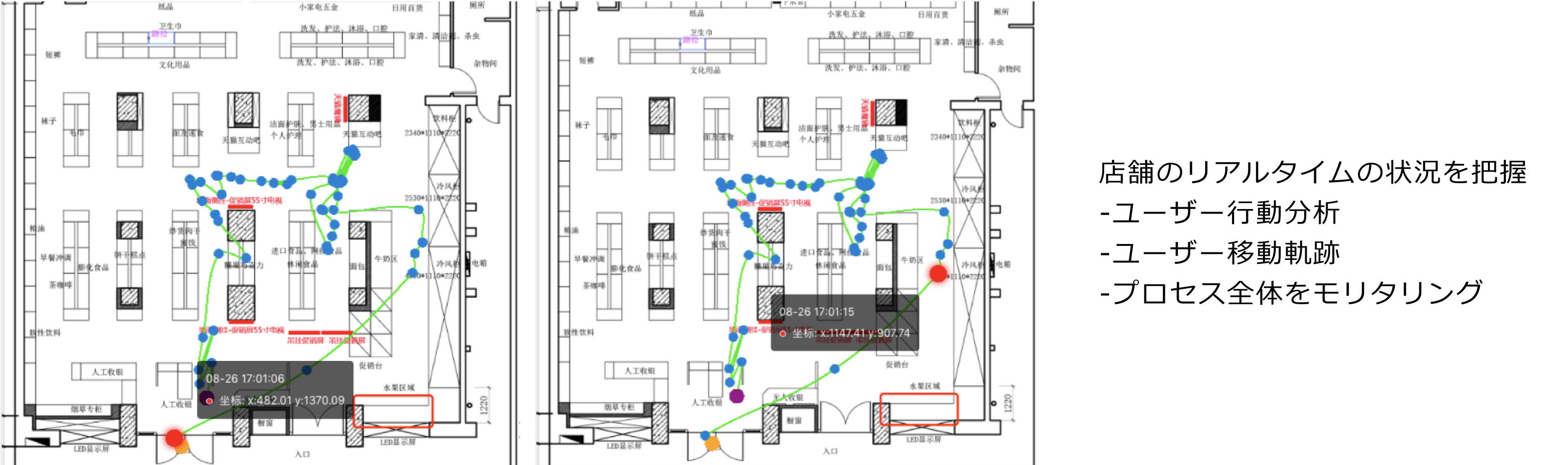 カメラを用いて、歩行者の経路を正確に解析することができます。